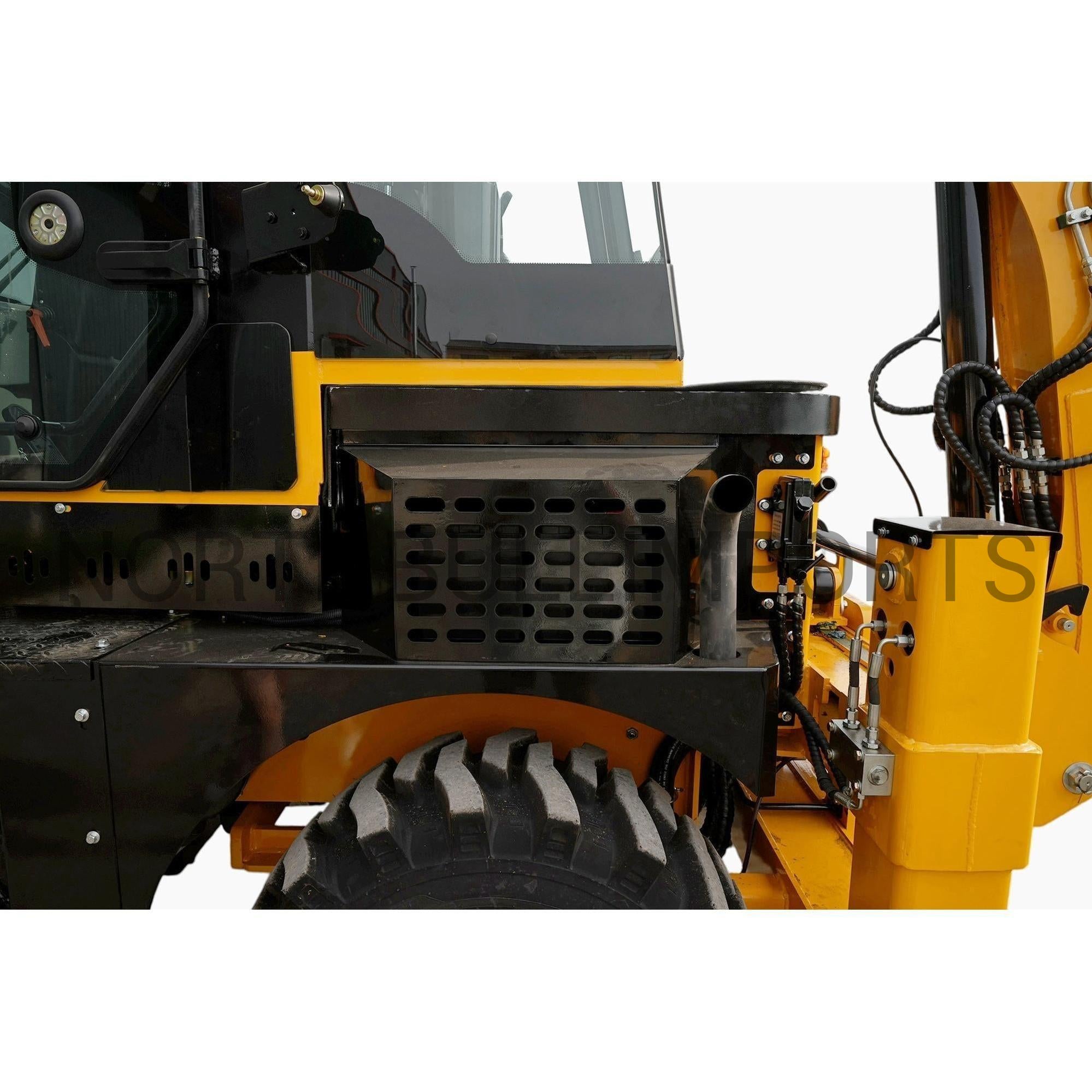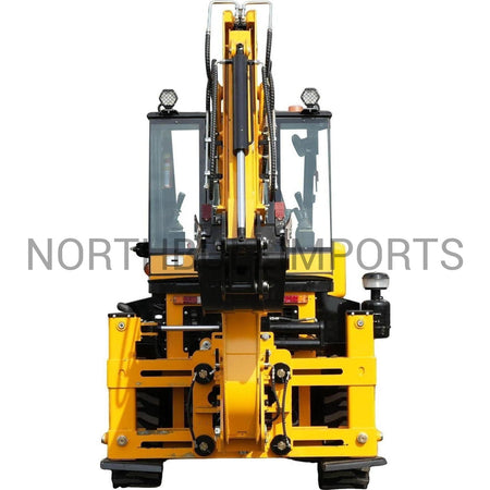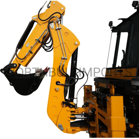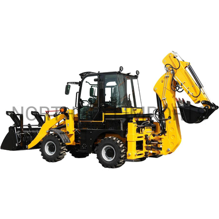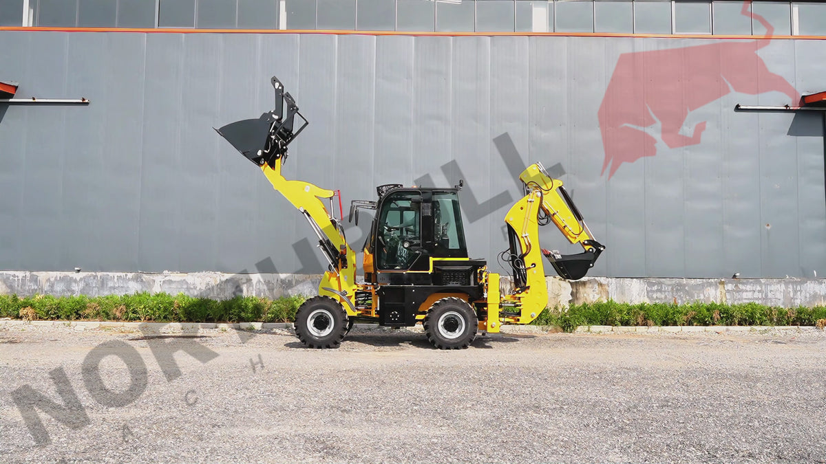 Etukuormaimen 0,65 m³ kauha nostaa lähes neljän metrin korkeuteen, eli tarpeeksi nostamaan lastia kuorma-autoihin, lavetteihin ja materiaalipinoihin. Takakaivinkone saavuttaa 3 030 mm kaivusyvyyden, joten perustustyöt, ojitukset ja korjauskaivannot sujuvat tehokkaasti.