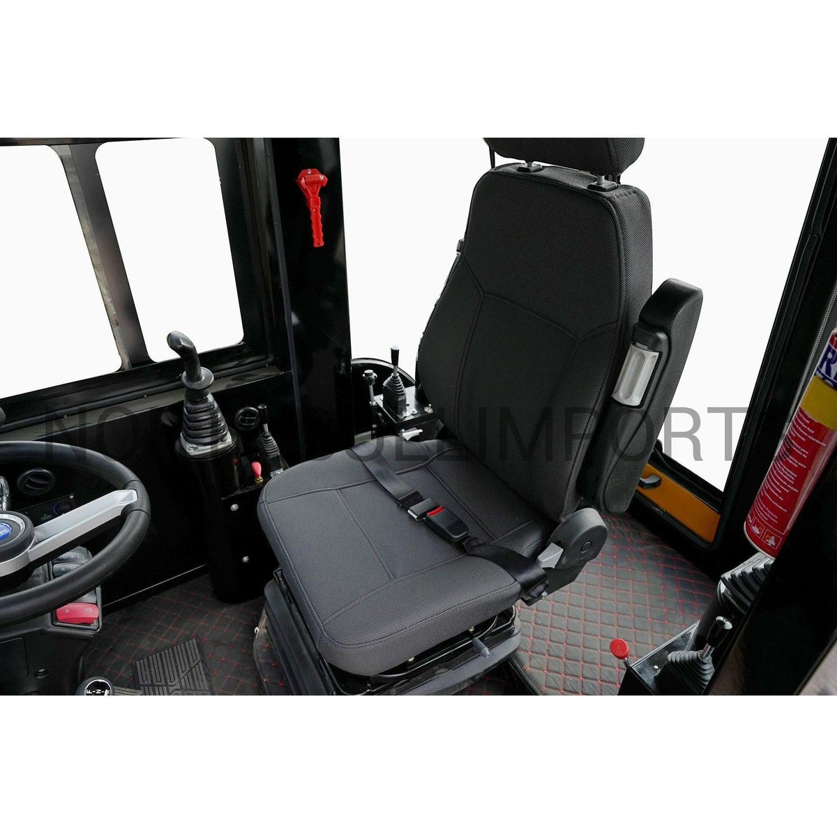 - Mukava työasento, kaivurin ohjaimet sivuilla